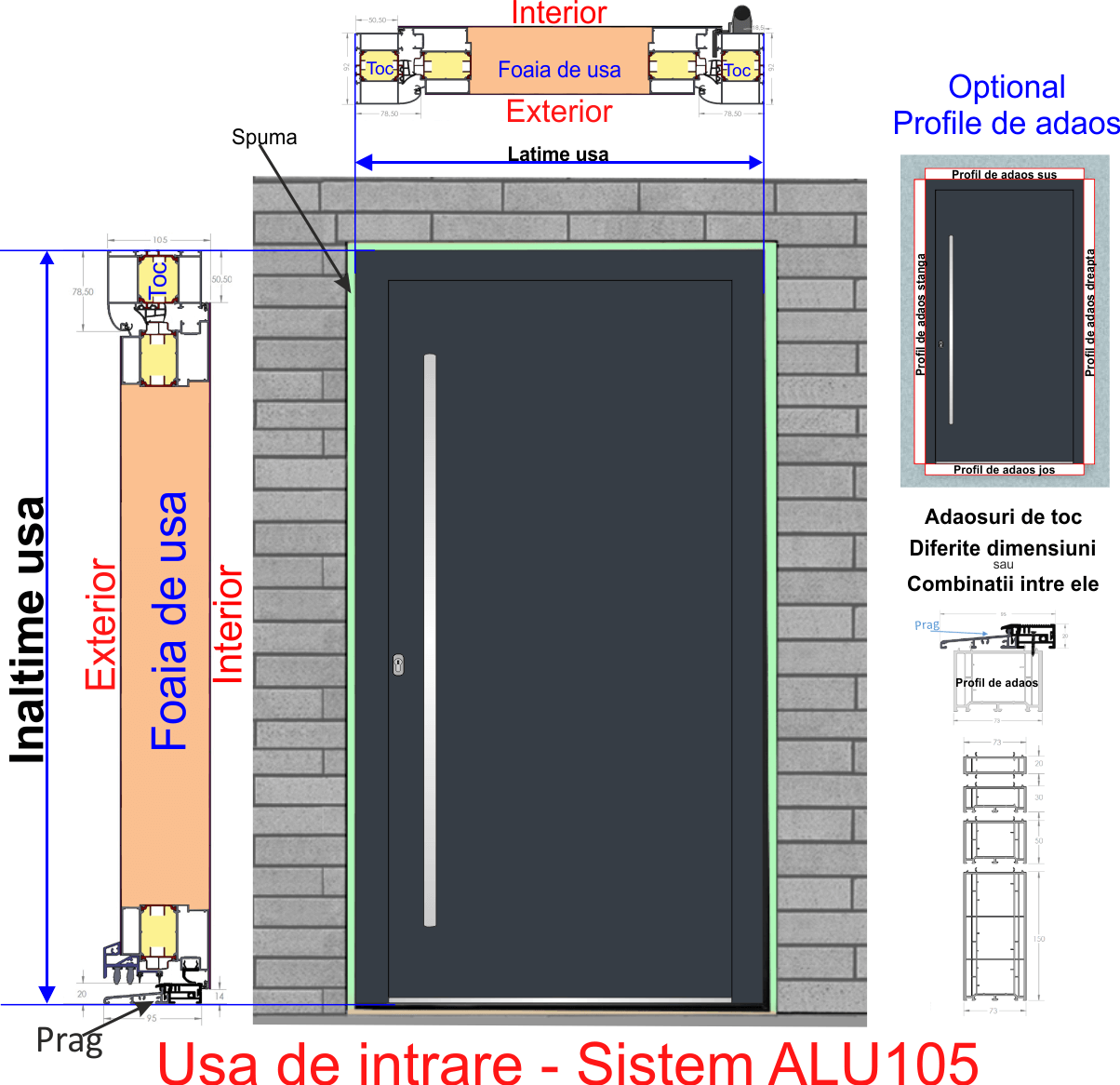 Usa de intrare 100% ALUMINIU Sistem ALU105 Premium