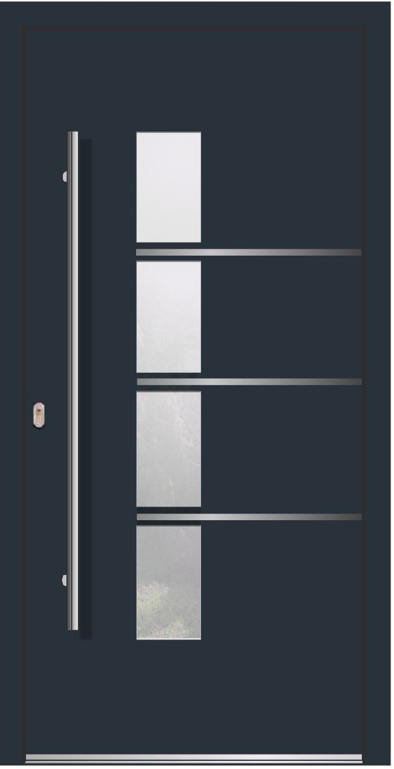 Toate elementele sunt incluse: Toc, foaie de usa cu cercevea placata interior si exterior, in exterior maner tip bara, sistem de inchidere mecanic-automat de la Winkaus AV3 si comutator zi/noapte, cilindru cu 5 chei si functie de urgenta de la Winkhaus, prag cu bariera termica,decoratiunile din inox, 3 balamale reglabile 3D.